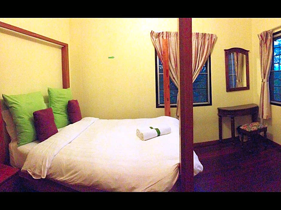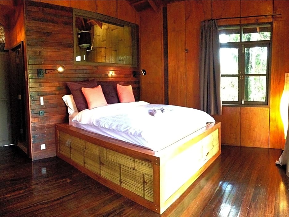 1 Double (Queen size bed), Air-conditioned & fan, Indoor bathroom (hot shower) & toilet, Outdoor shower (cold shower), Veranda: Forest nature view